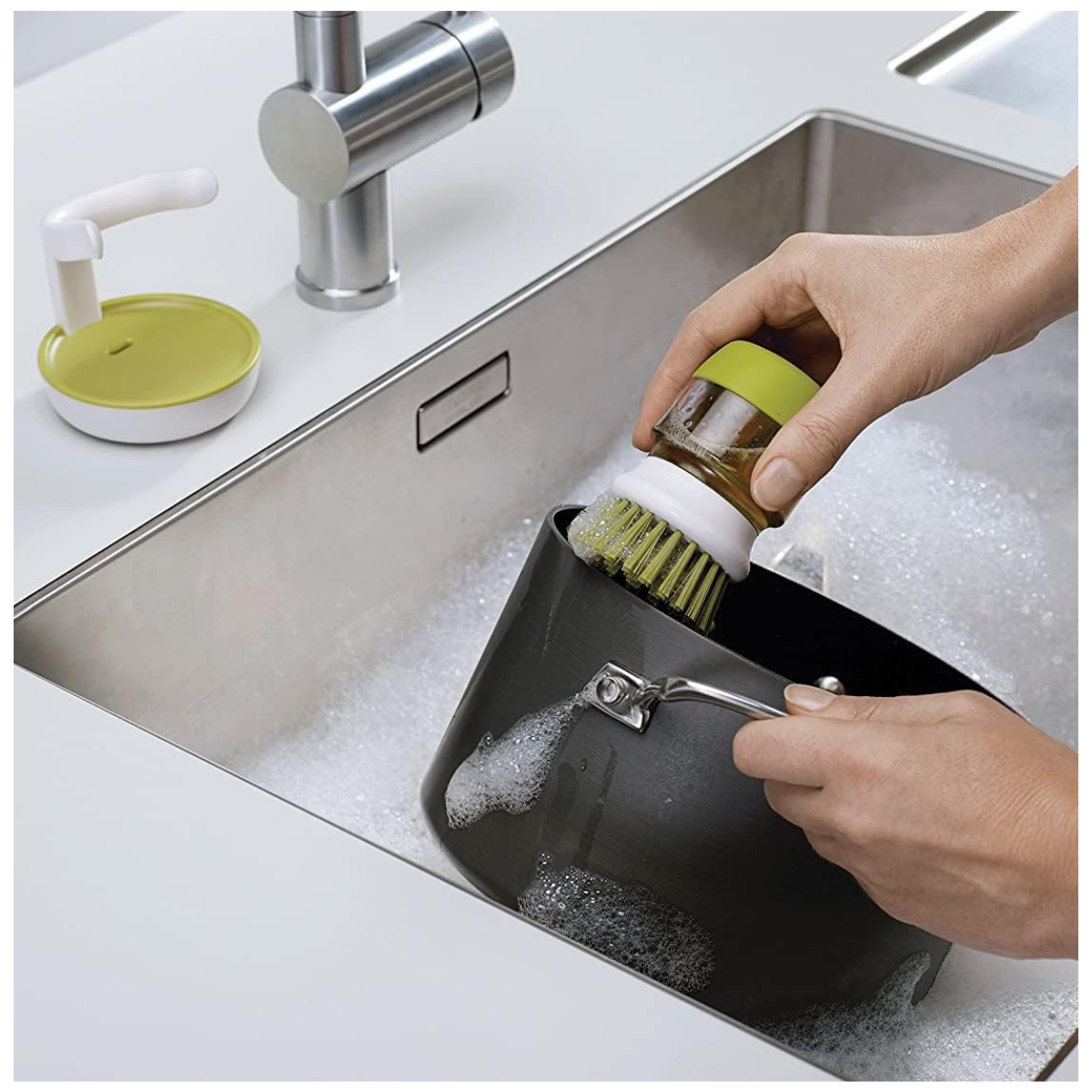 - Cerdas Suaves: Las cerdas suaves permiten remover las manchas difíciles sin rayar la superficie de ollas y sartenes.